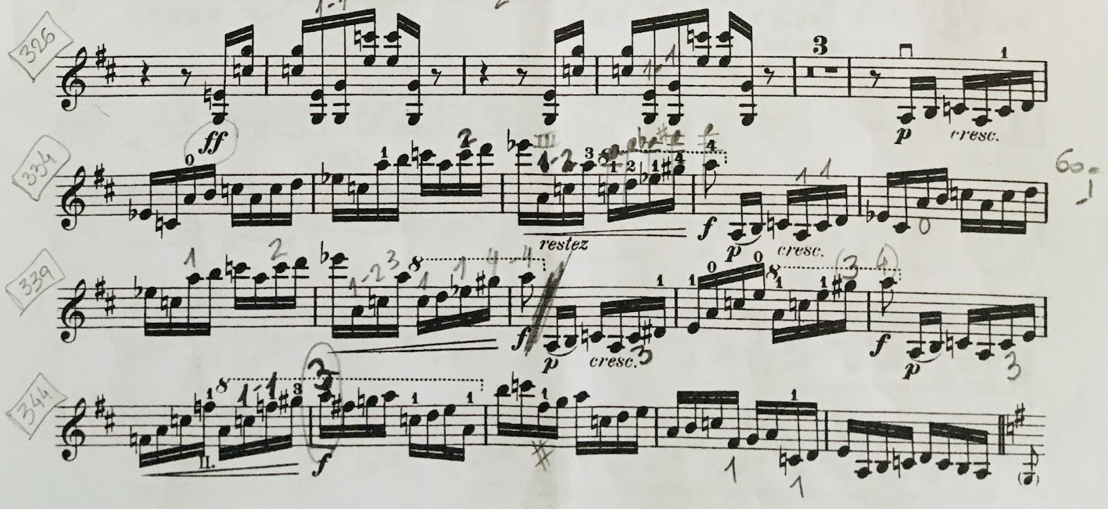 - Bars 333 to 349 (slowly memorising and revising fingerings…)